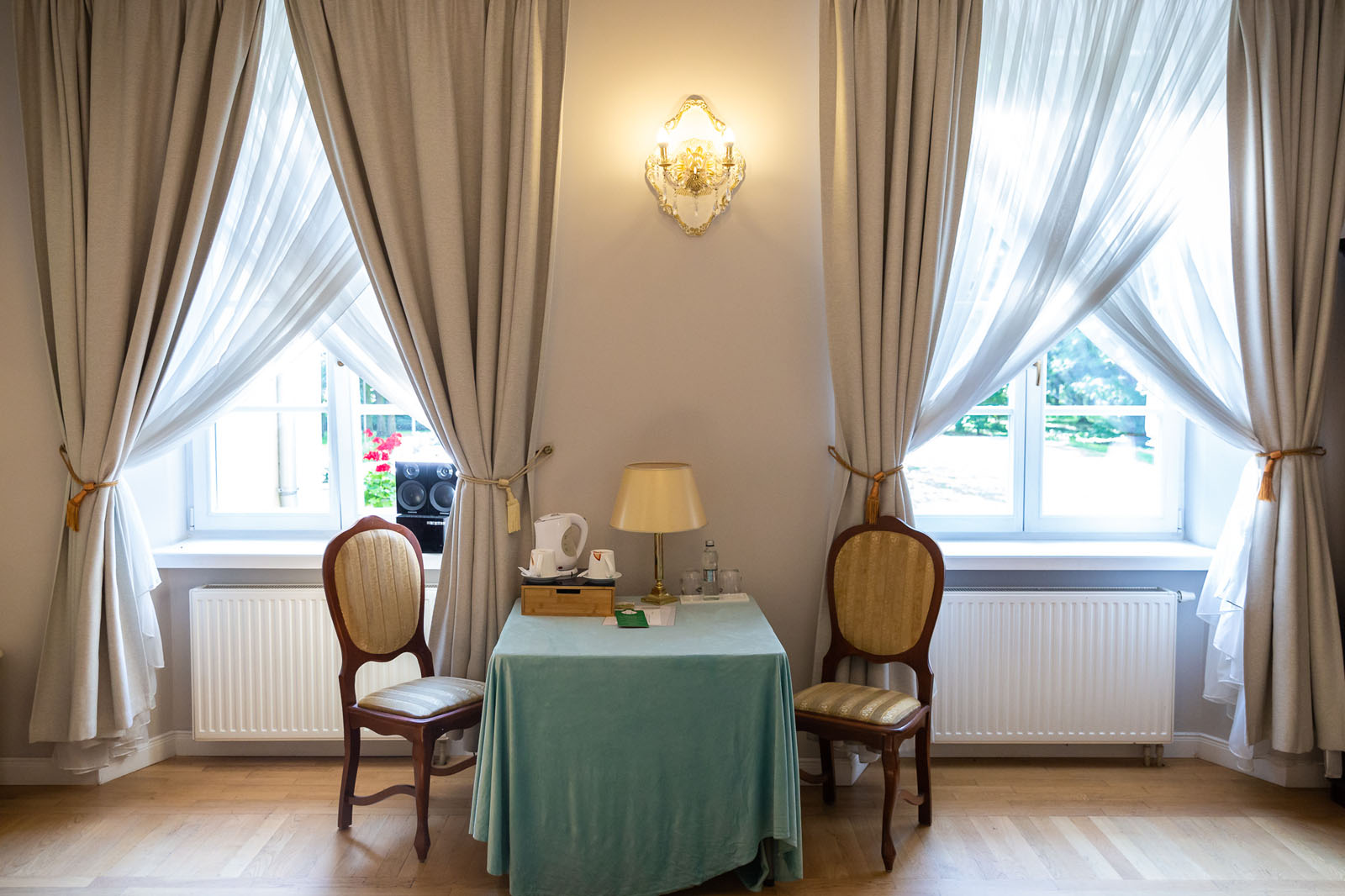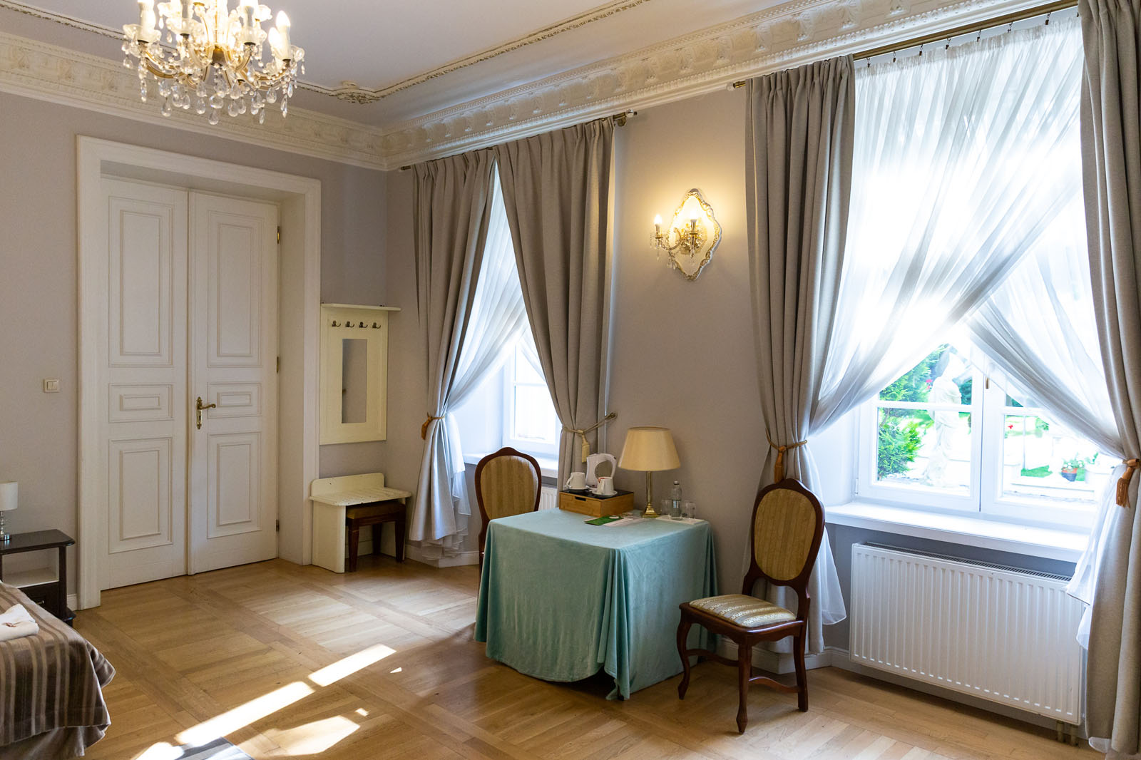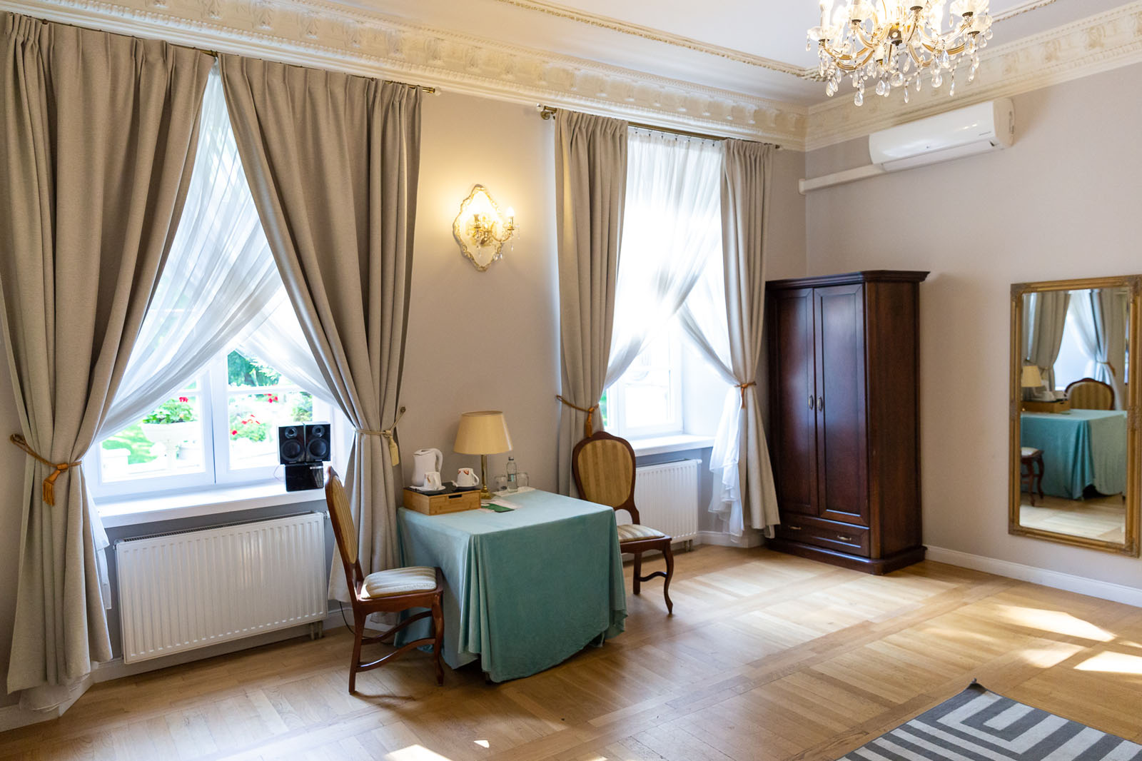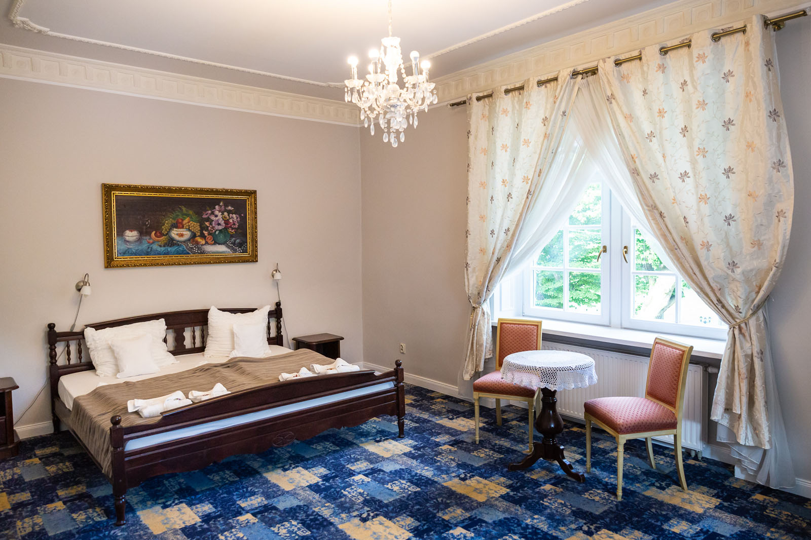 Przestronne i komfortowe pokoje ok 20m2 z widokiem na ogród, zapewniające większą swobodę i bliskość natury. Jasne wnętrza oraz spokojne otoczenie sprzyjają relaksowi i odpoczynkowi.